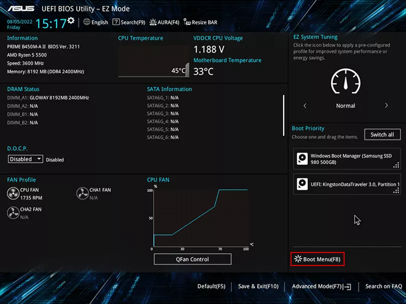 3. In EZ Mode, press F8 (Boot Menu)